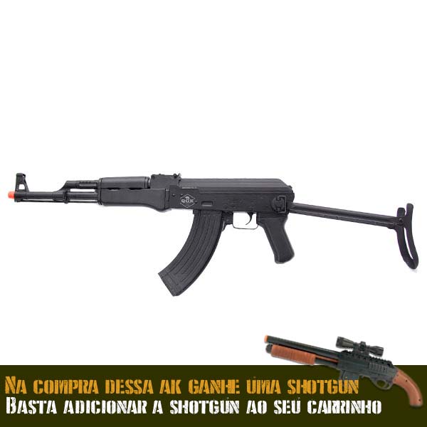 Rifle Airsoft AK47 QGK, modelo Victor possui coronha tática retrátil, sendo perfeito para CQB (Close Quarters Battle).