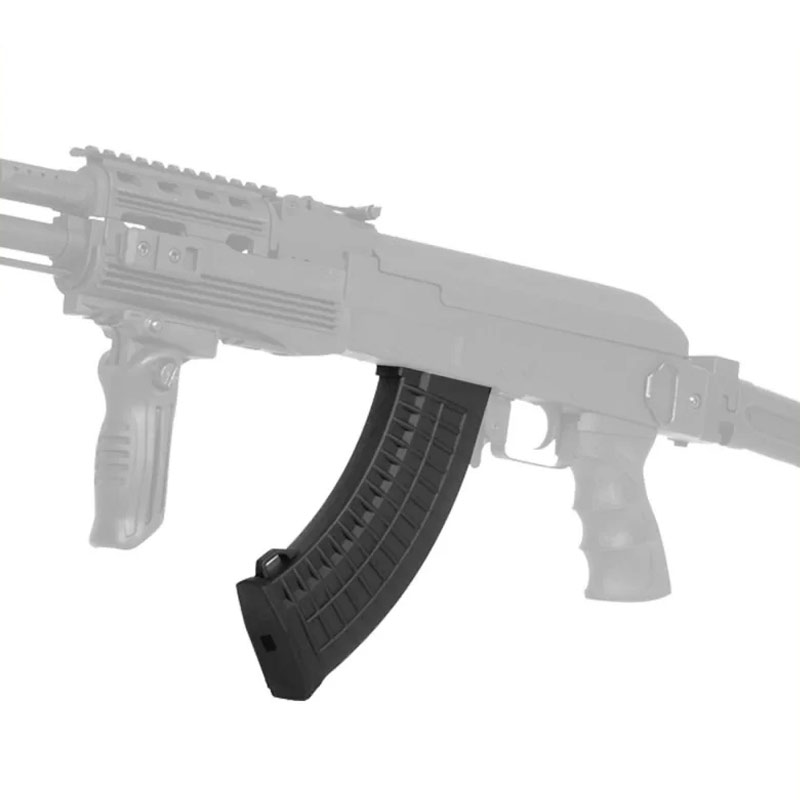 E também para facilitar ainda mais em campo, adicionamos um magazine extra de média capacidade que tem capacidade para até 120bbs e por ser mid-cap não possui catraca, dessa forma é mais silencioso em jogo para você surpreender os adversários sem ser notado enquanto se aproxima.