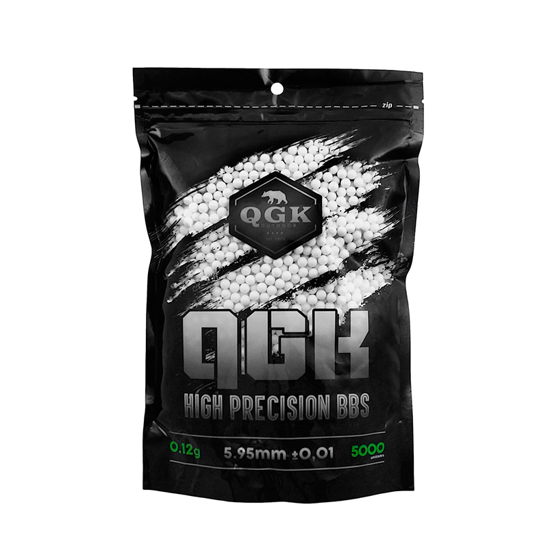 Munição Airsoft BBS são Esferas plásticas da QGK com 0,12g uso indicado em Pistolas e Rifles Airsoft Spring.