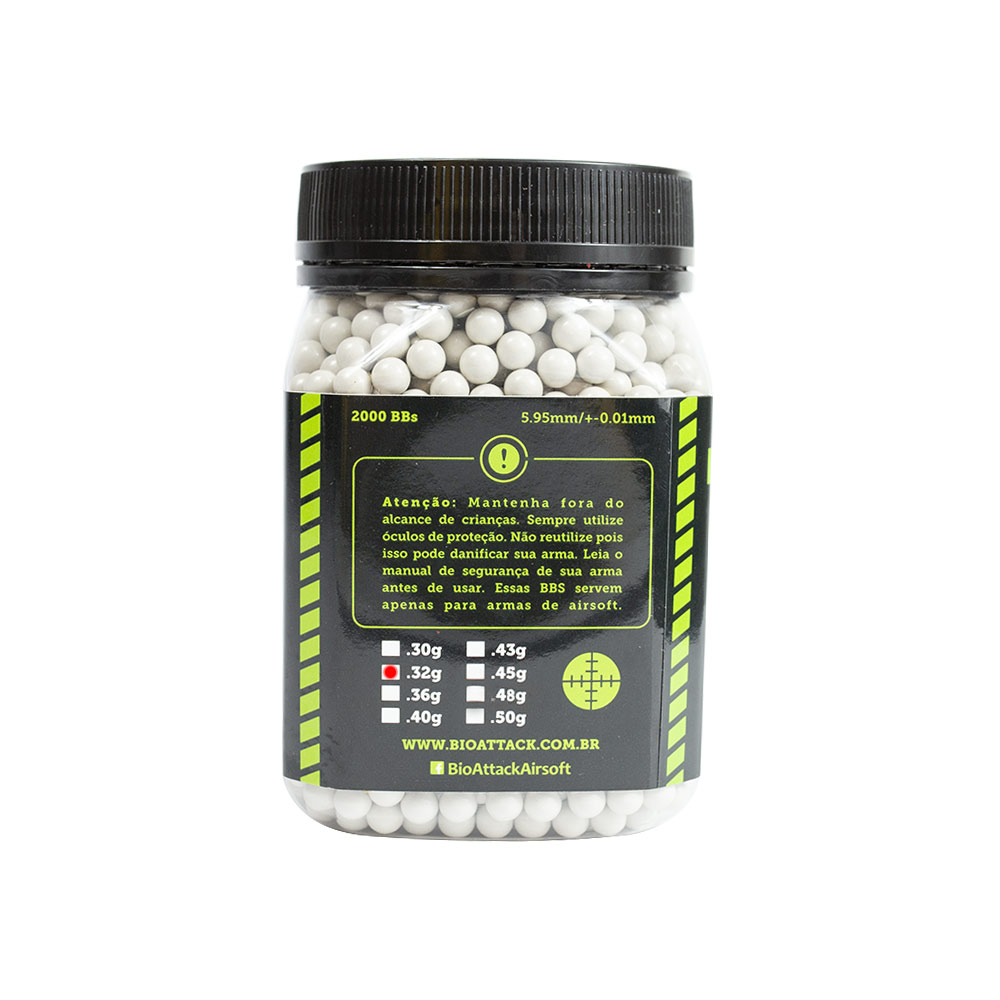 Pote de BBs Bio Attack 0.32g - Características: