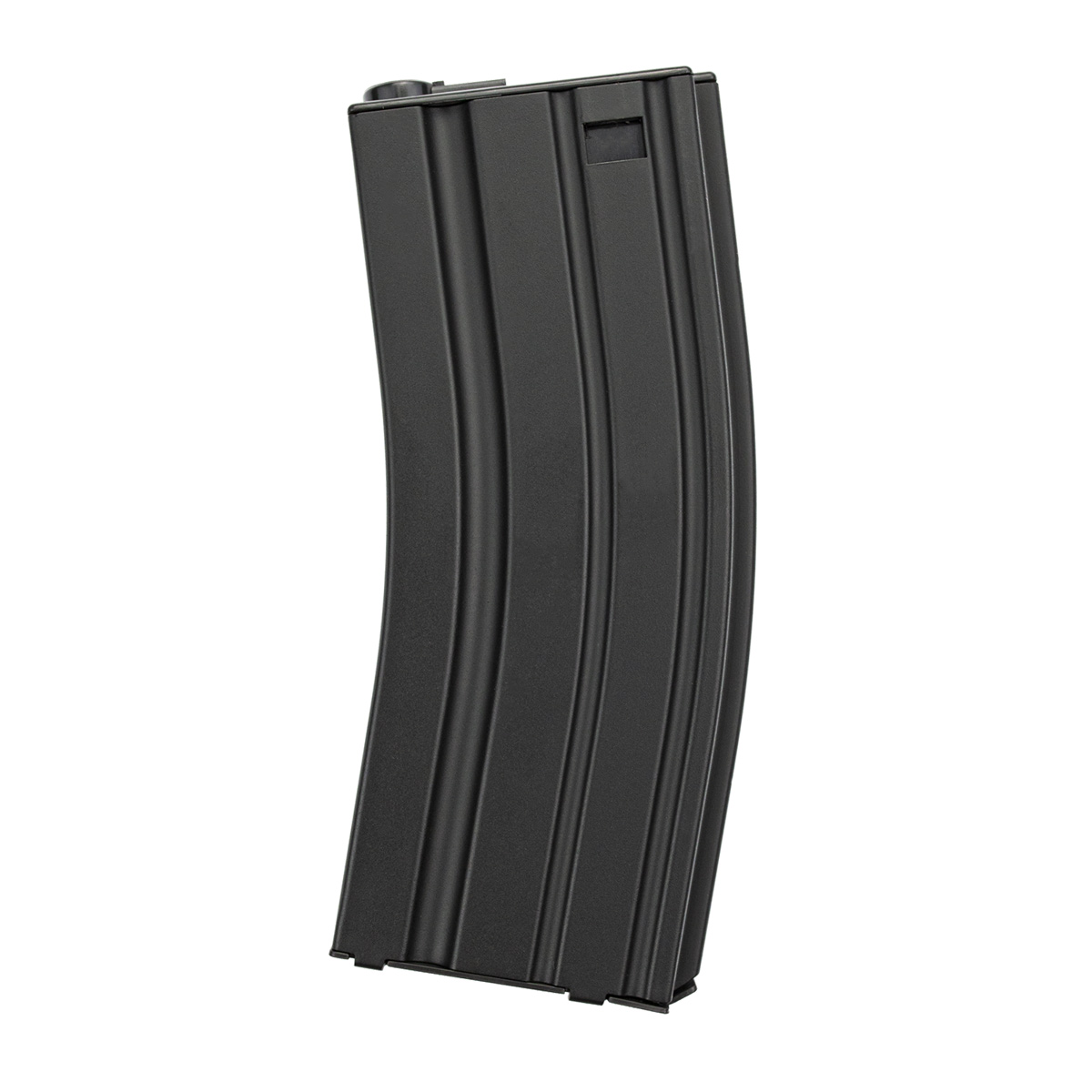 Acompanha um magazine hi-cap preto, que tem capacidade para uso de até 300 bbs.
