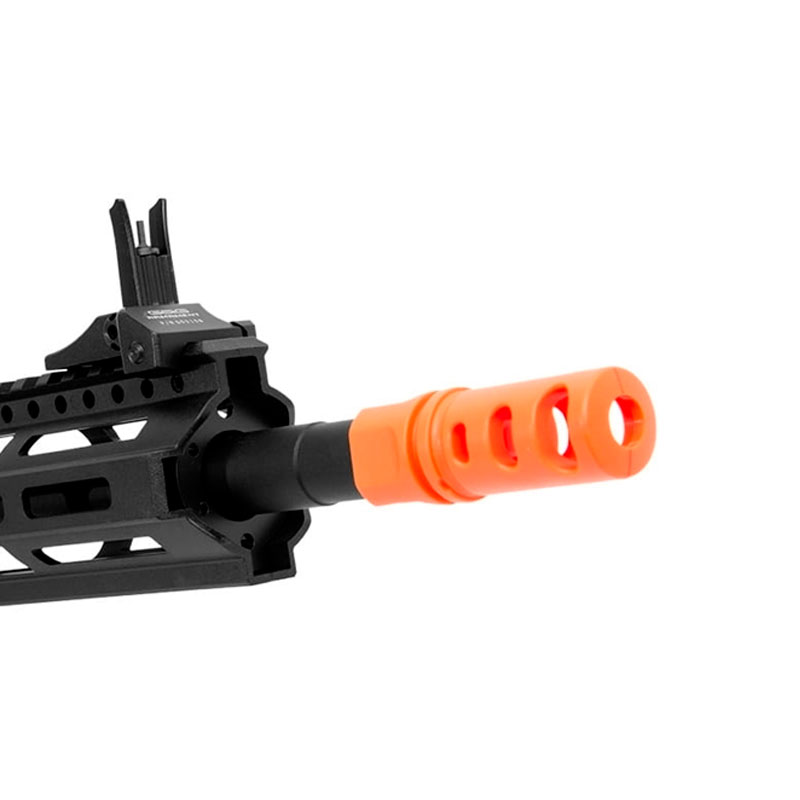 Flash rider pode ser removido, dando acesso a rosca 14mm invertida, possibilitando o uso de Silenciador Airsoft.