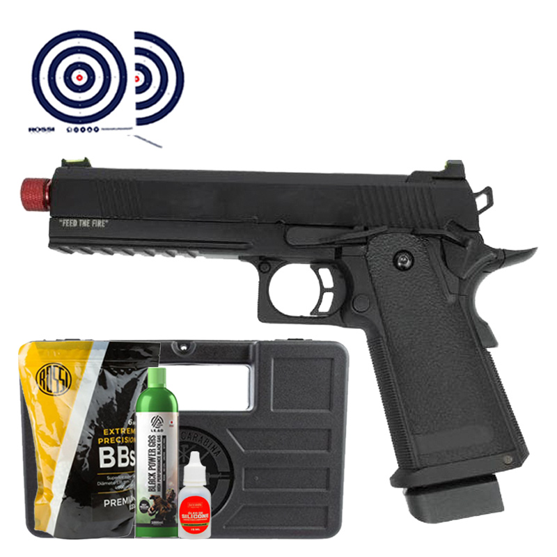 Airsoft GBB 1911 Black Evil Blowback Full Metal TAG + Maleta + Green Gás + BBs 0.20g + Óleo + Alvos