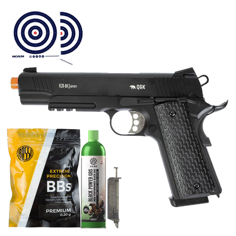Airsoft GBB M1911 R28 Warrior Full Metal BlowBack Army + Green Gas + Speedloader + BBs 0.20 + Alvos