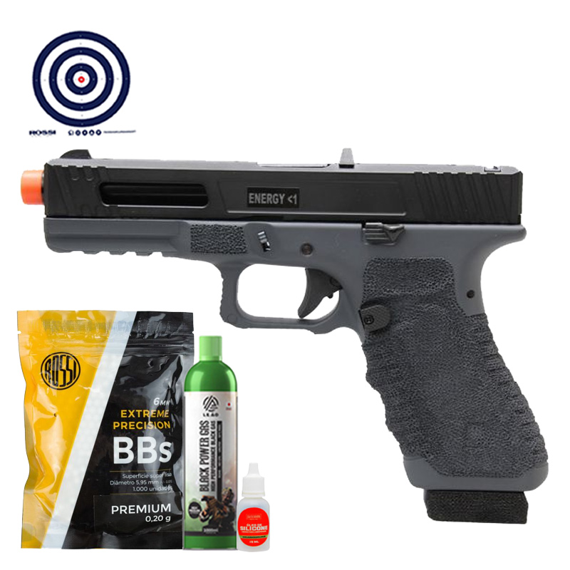 Airsoft GBB Secutor Glock Gladius 17 Cinza + Green Gas + BBs 0.20g + Oleo + Alvos