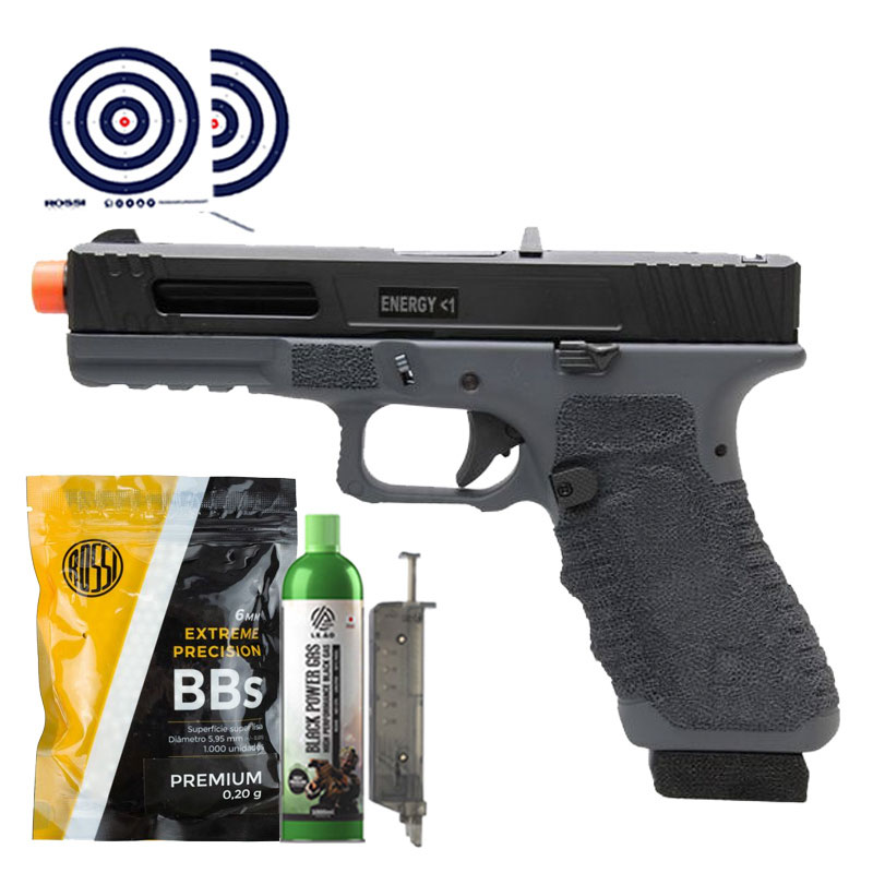 Airsoft GBB Secutor Glock Gladius 17 Cinza + Green Gas + BBs 0.20g + Speedloader + Alvos