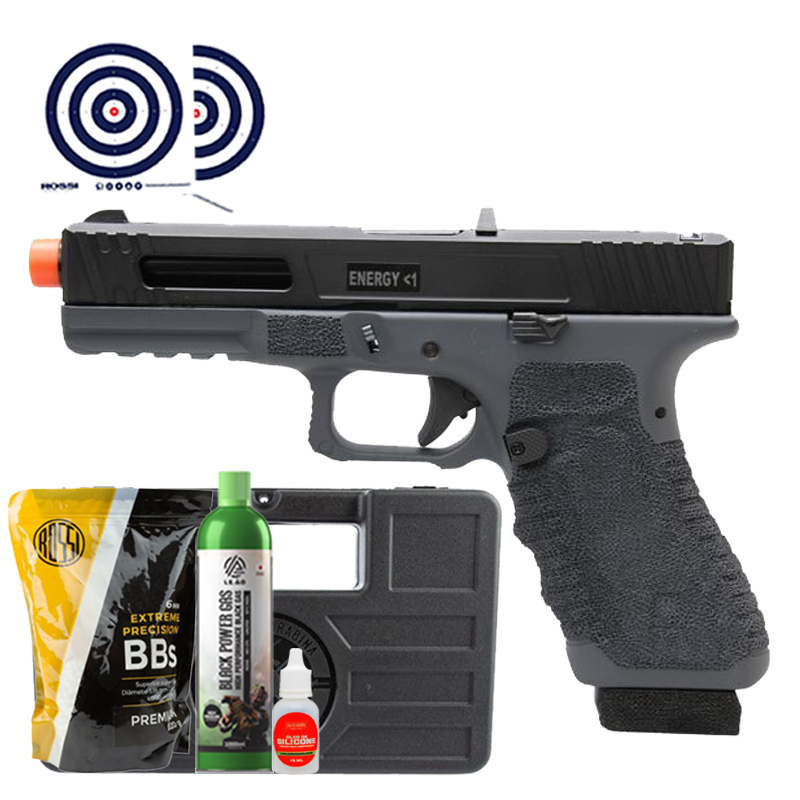 Airsoft GBB Secutor Glock Gladius 17 Cinza + Maleta + Green Gás + BBs 0.20g + Óleo + Alvos