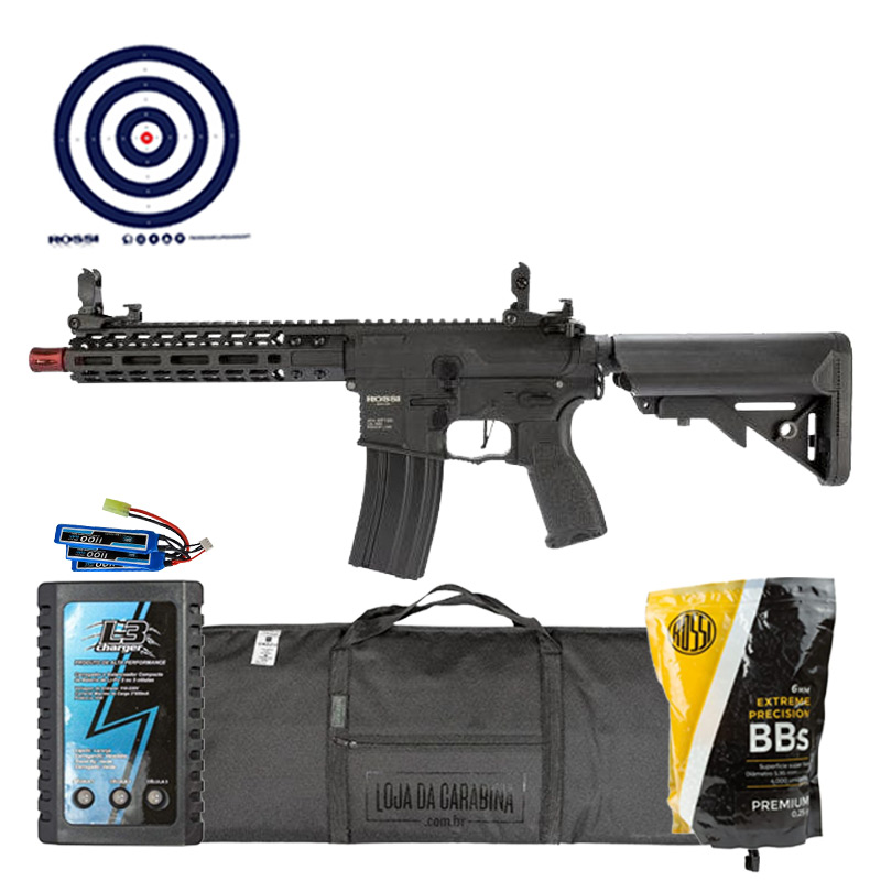 A Rossi disponibiliza esse rifle elétrico pronto para os jogos, sua velocidade de disparo é de 380 FPS com BBs 0,20, seu ajuste de hop-up é o modelo prowin com ajuste fino, dando ao operador maior controle do disparo.