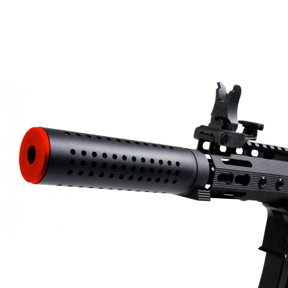 Conta com trilho Keymod e RIS 22mm para fixação de acessórios.
