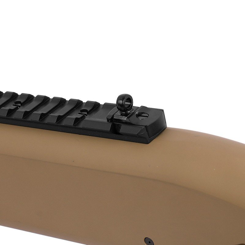 Possui uma coronha ajustável padrão M4, com 5 posições de ajuste e tubo em metal com reservatório para o Green Gás.