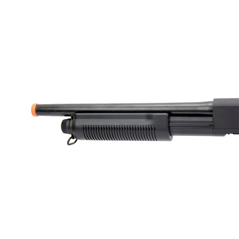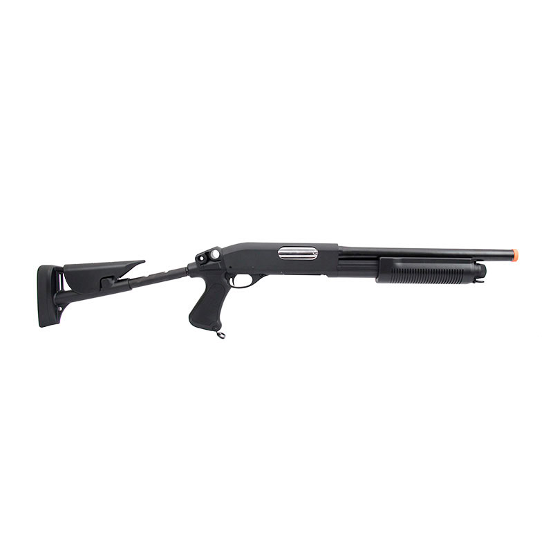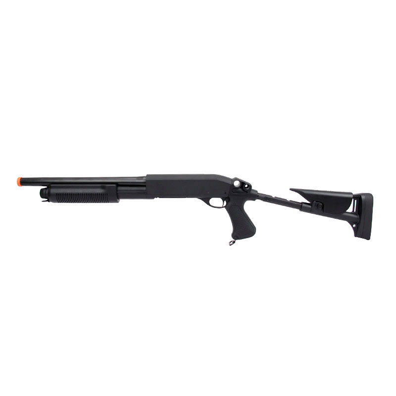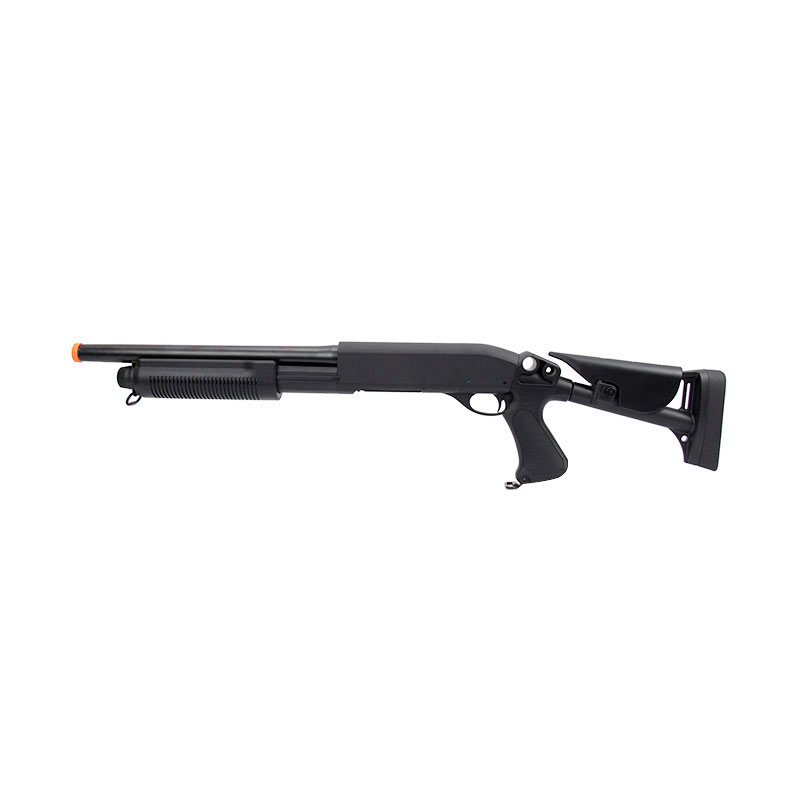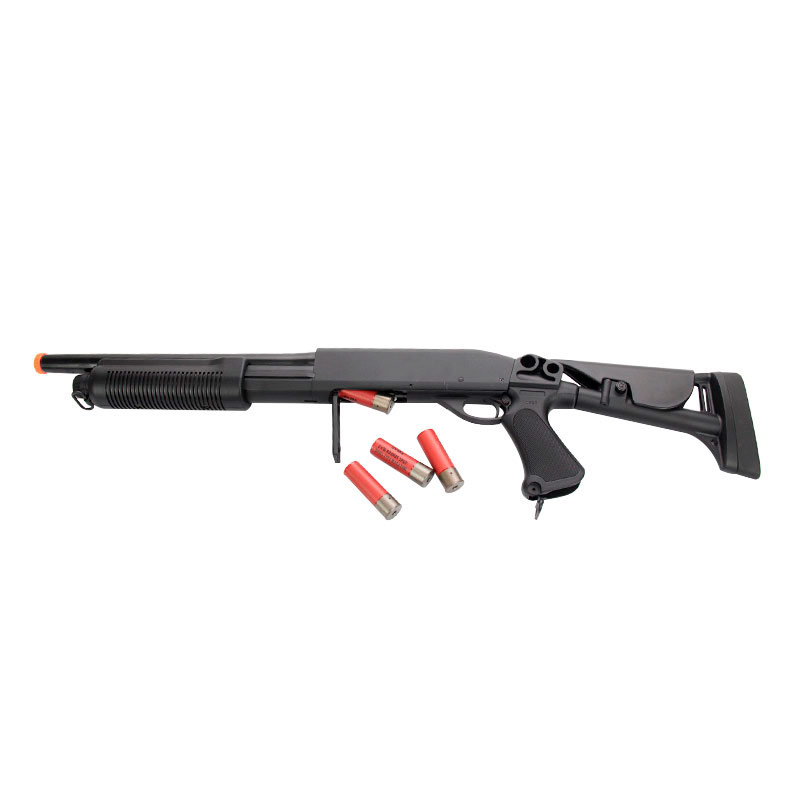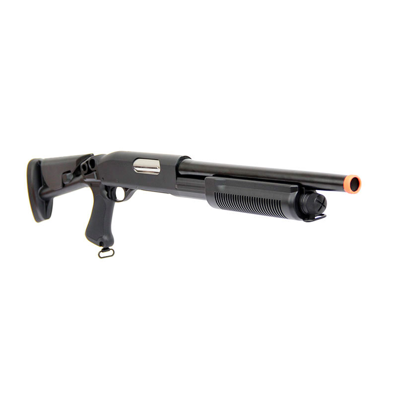 Essa Shotgun Airsoft é fabricada pela Cybergun, tem uma excelente construção e um grande desempenho.Engatilhamento Pump. Sistema Spin Up, permitindo que você possa ajustar o curso da sua BBs. Coronha ajustável, dessa forma você consegue regular da forma que ficar mais confortável para sua pegada durante os jogos.