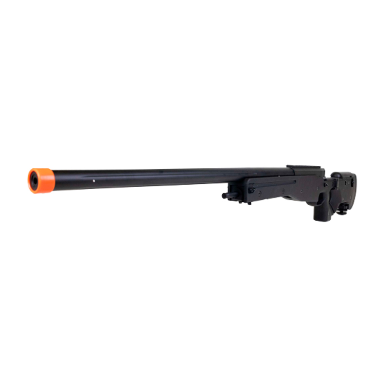 Fabricado em polímero na cor preta, é uma Sniper resistente e durável com cano e mecanismo em metal.