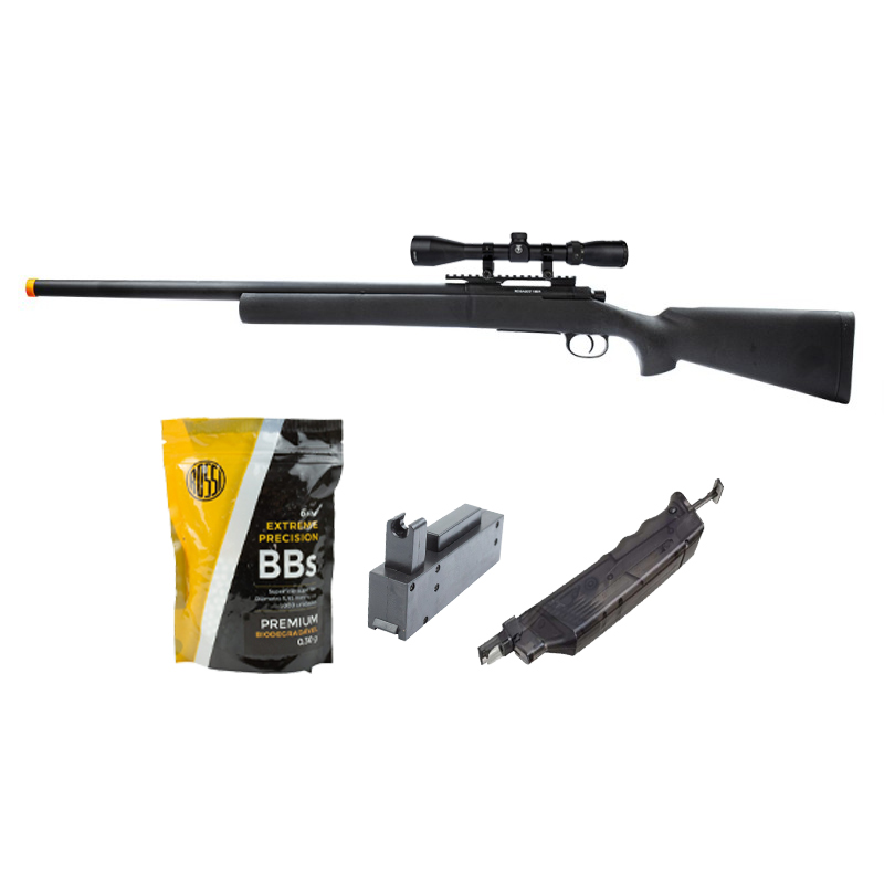 SNIPER AIRSOFT M24 STORM + BBS + MAGAZINE + SPEED LOADER + LUNETA 3-9X40