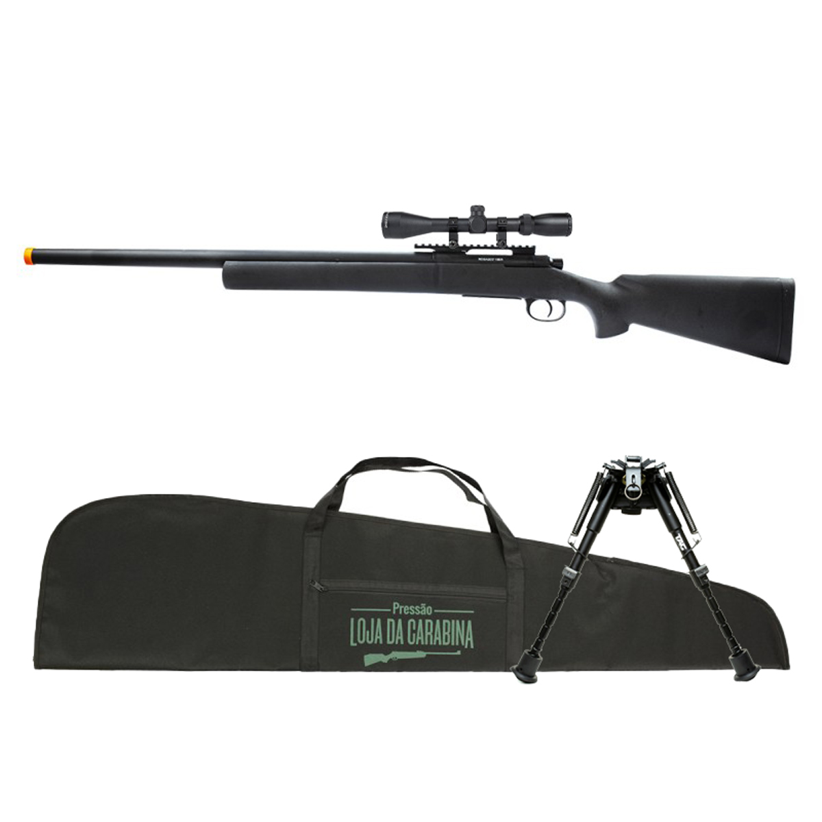AIRSOFT SNIPER M24 STORM ROSSI + LUNETA 3-9X40 + CAPA + BIPÉ