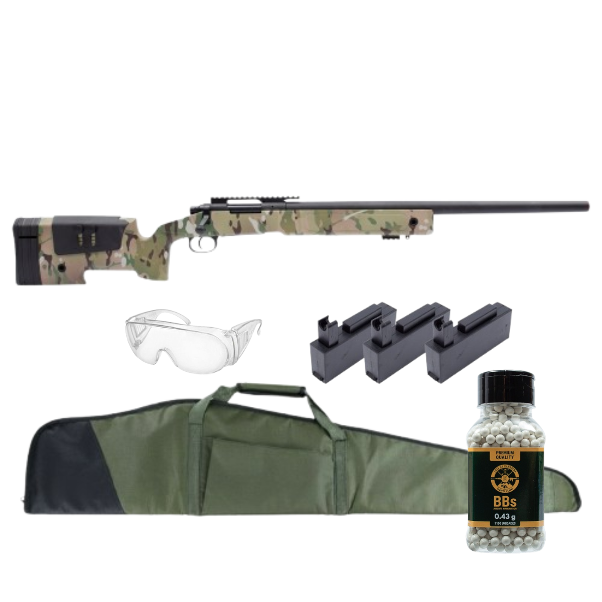 Airsoft Sniper M40 SA-SO2 Core S-Series Multicam + Capa Sniper + Oculos de Protecao + BBs 0.43g