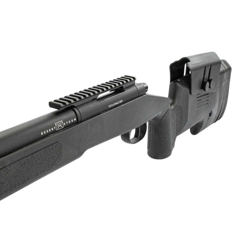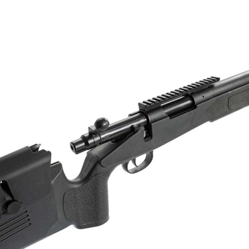 A Arma de Airsoft da Rossi, modelo M40 Storm, tem praticamente a mesma configuração da M24 Storm, então já existem bastante peças de upgrade no mercado, ela é fabricada em polímero de alta densidade e reforçado com fibra de nylon, essa combinação garante leveza e muita resistência para sua arma e sua montagem é super simples e descomplicada! As partes feitas de metal são: cano externo, câmara, gatilho e charging handle, assim como o trilho.