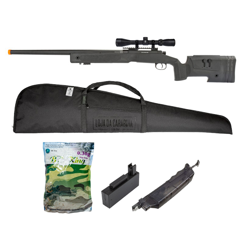 SNIPER AIRSOFT 40 STORM + BBS + MAGAZINE + SPEED LOADER + LUNETA 3-9X40 + CAPA