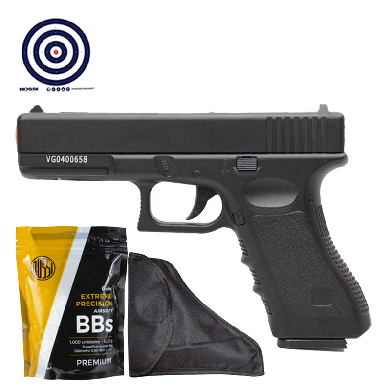 Compre KIT de Arma de Airsoft Full Metal Glock GK-V20 + BBs 0.12g + Coldre + Alvos, na LojaDaCarabina! Tudo com nota fiscal e garantia.