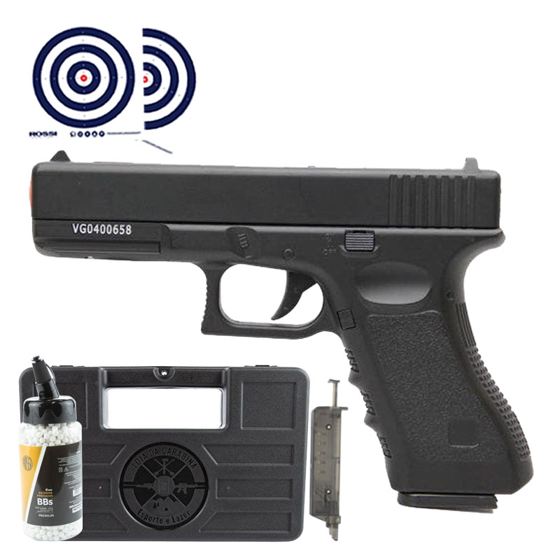 PISTOLA AIRSOFT GLOCK GK-V20 + CASE LC + AIRSOFT BB'S + SPEEDLOADER + ALVOS ROSSI