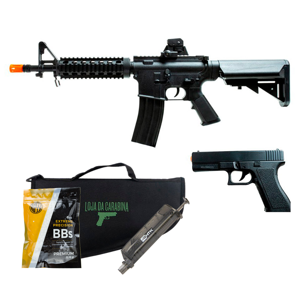 AIRSOFT SPRING M4A1 + PISTOLA SPRING V307 VIGOR + CAPA UNIVERSAL LC PARA PISTOLAS 30CM