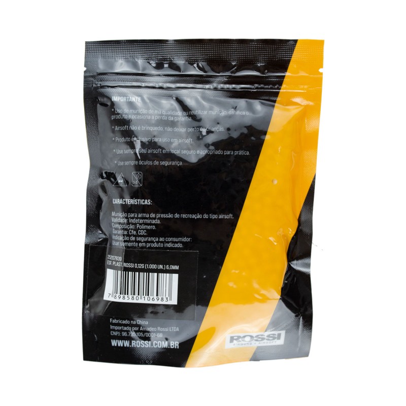 Airsoft BBs 0.12 Rossi Pacote com 1000 Unidades - Características: