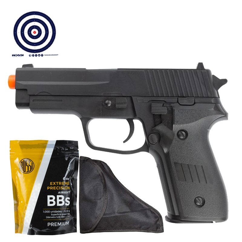 Compre KIT de Airsoft Spring Vigor P226 com munições BBs 0.12g, Coldre para pistola e Alvos de Tiro, na LojaDaCarabina! Todos os envios de armas com nota fiscal e garantia.