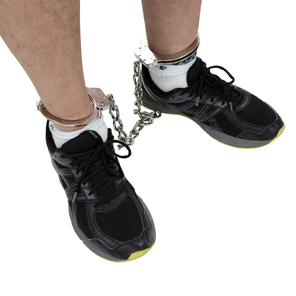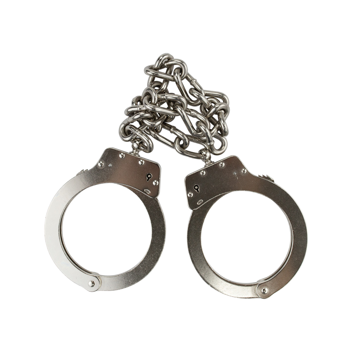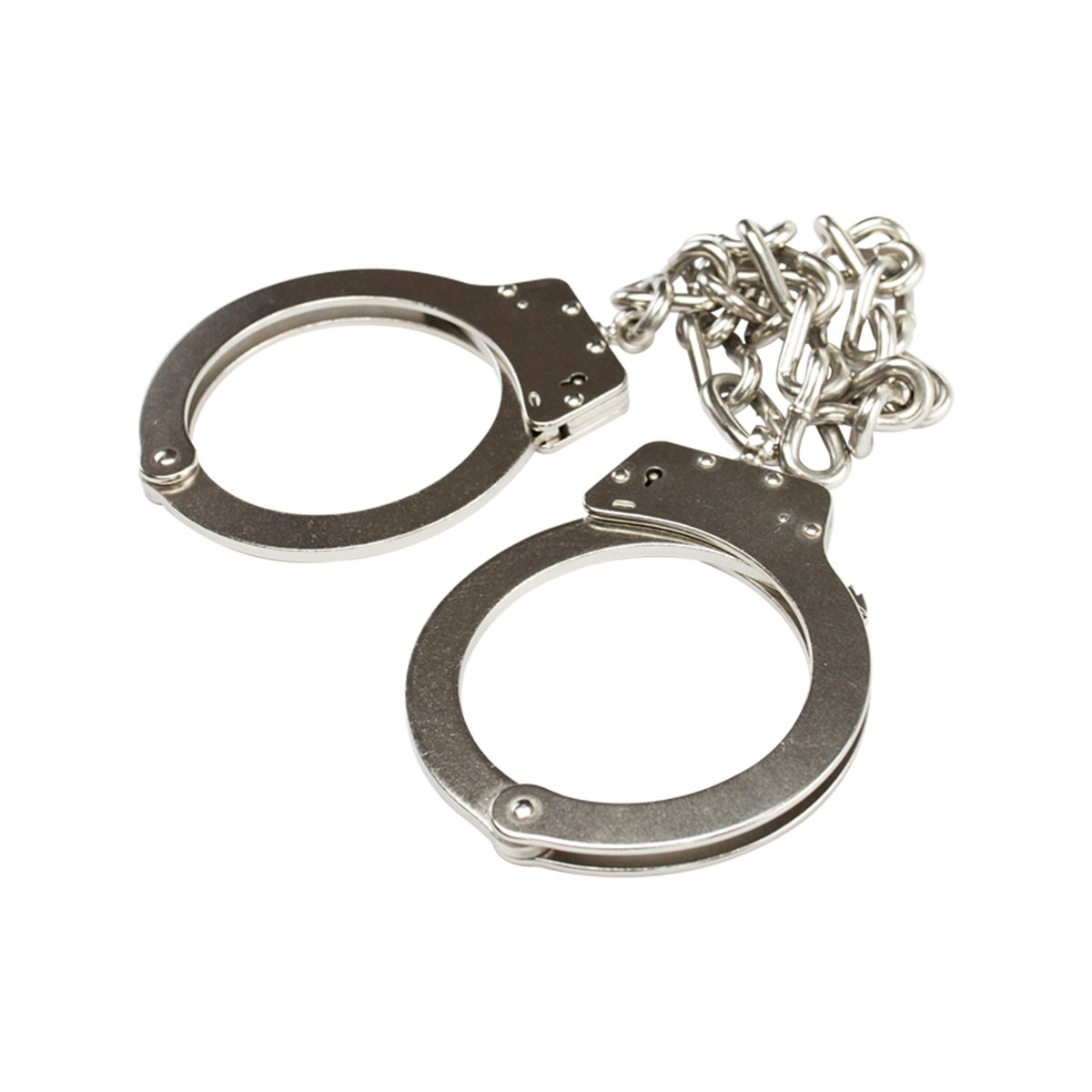 Algema niquelada com trava Handcuffs, algema fabricada em aço de alta resistência com acabamento niquelado, possui trava de segurança e acompanha 2 chaves, suporta até 200 Kg de pressão