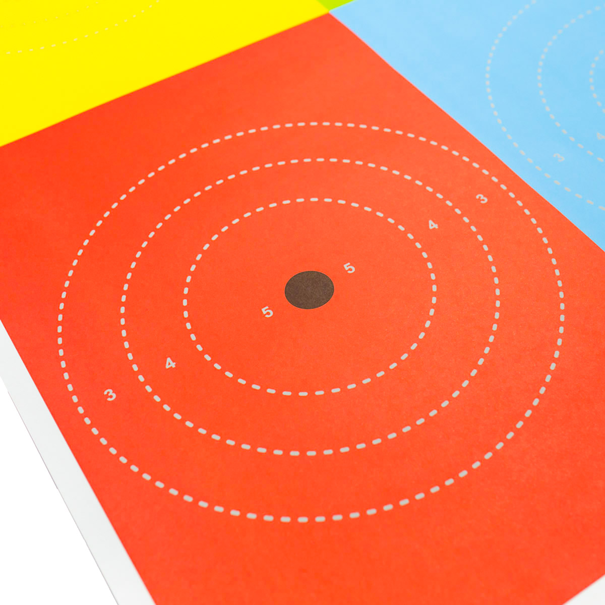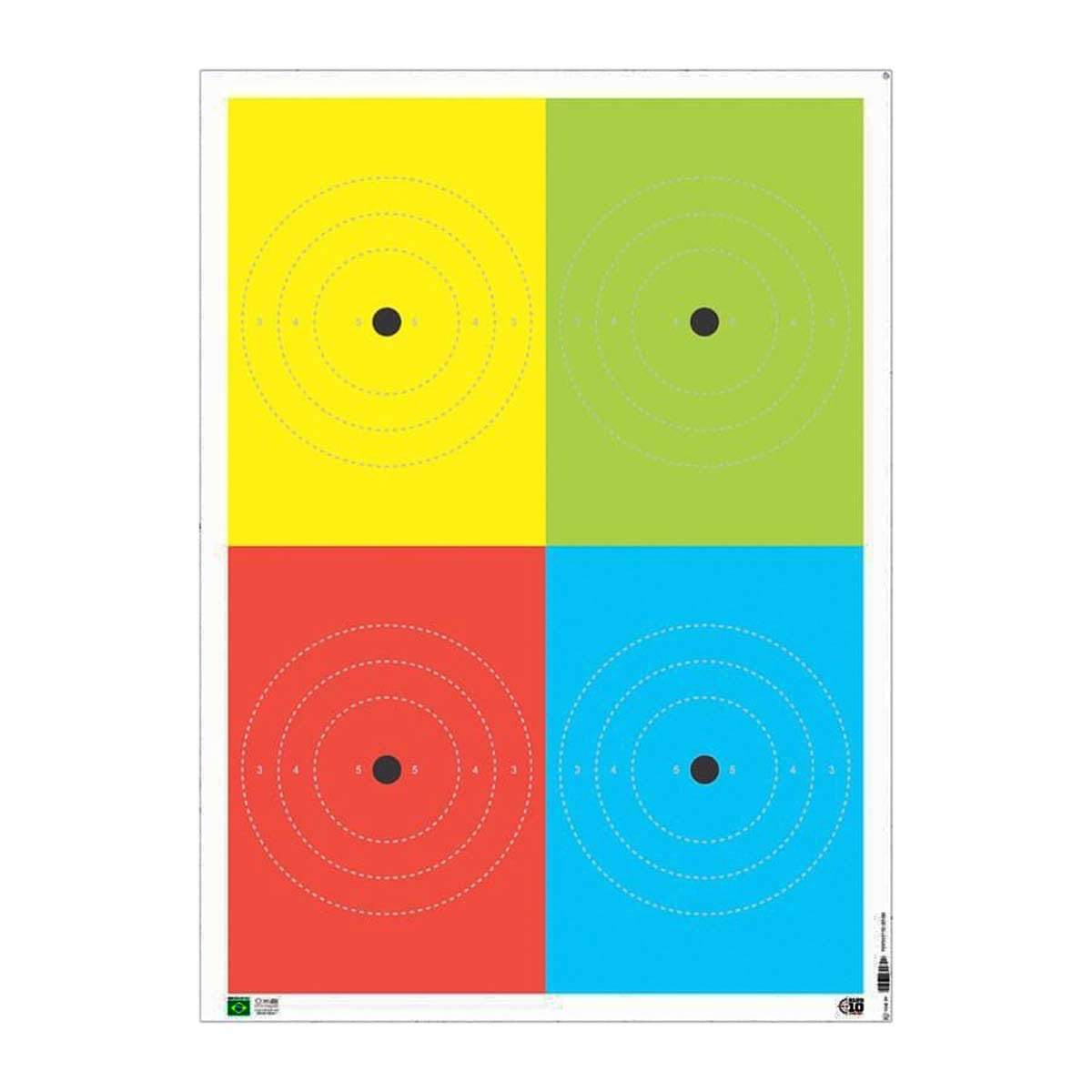 Sua aplicação é voltada tanto para treinamento profissional quanto para tiro esportivo e competições oficiais. A divisão em quatro cores facilita a análise visual do agrupamento, permitindo ao instrutor identificar padrões de erro como antecipação do disparo, desalinhamento de mira e controle inadequado do gatilho. Isso torna o alvo uma ferramenta essencial para evolução técnica e correção precisa do atirador.