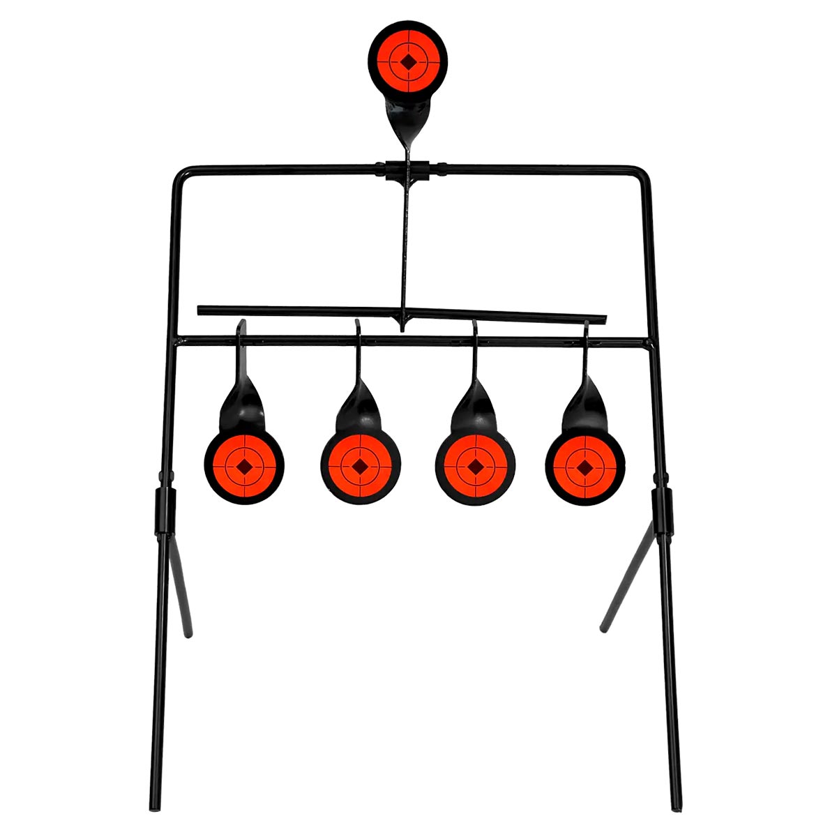 Seu principal destaque é o sistema auto reset, que permite o reinício automático do alvo superior ao acertar os quatro pêndulos inferiores. Esse mecanismo elimina a necessidade de reposicionamento manual após cada sequência de disparos, mantendo o ritmo do treino e aumentando a produtividade.