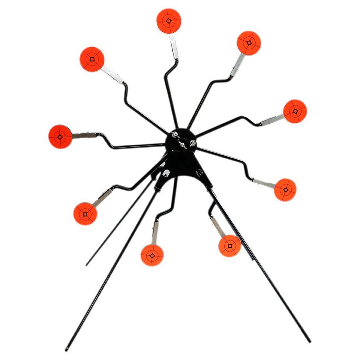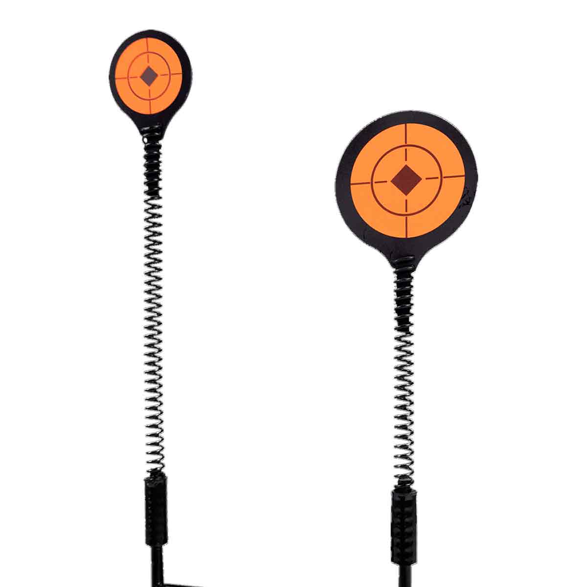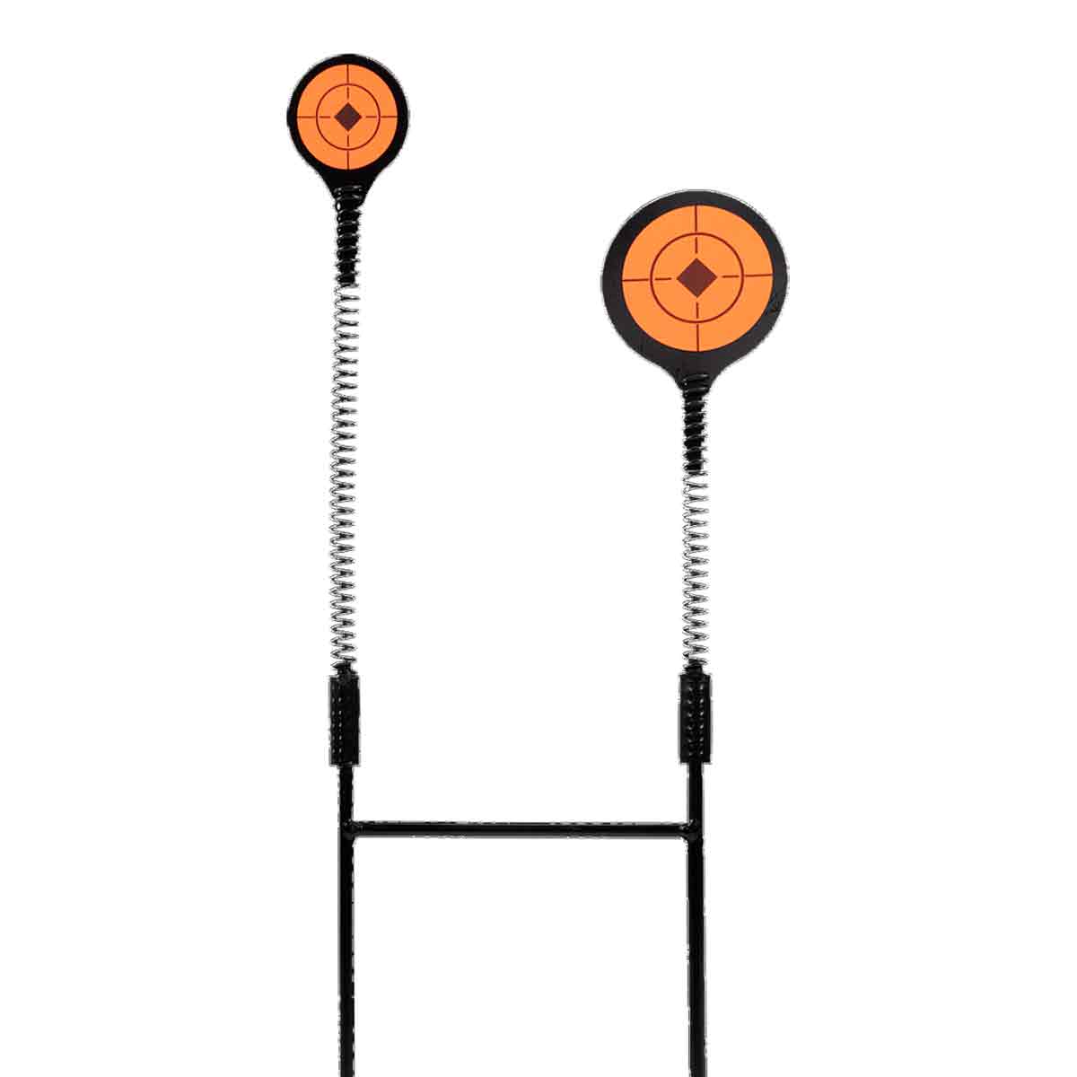 Seu design duplo com sistema de mola permite que os alvos retornem automaticamente à posição original após o disparo, tornando a prática mais dinâmica, fluida e contínua, sem a necessidade de reposicionamento manual a cada acerto. O acabamento nas cores preto e laranja proporciona excelente contraste e visibilidade, facilitando a identificação dos alvos mesmo a maiores distâncias.