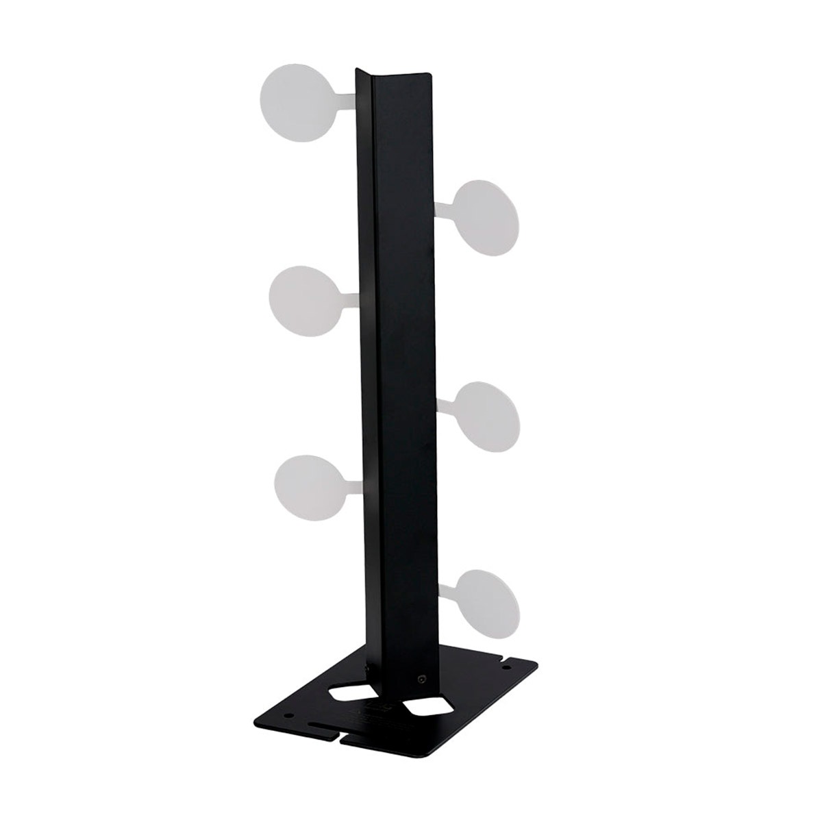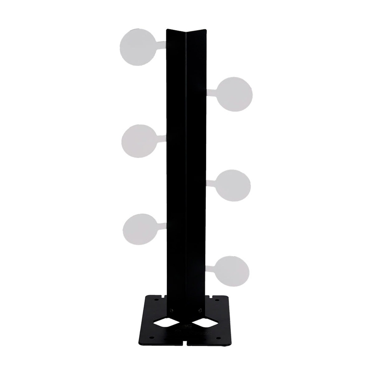 Fabricado em metal, com espessura de 0,2 mm nos alvos, é ideal para uso exclusivo com airsoft, garantindo resistência adequada sem comprometer o funcionamento do sistema. Sua estrutura vertical com fixação em base horizontal proporciona estabilidade durante o uso, evitando deslocamentos durante os disparos.