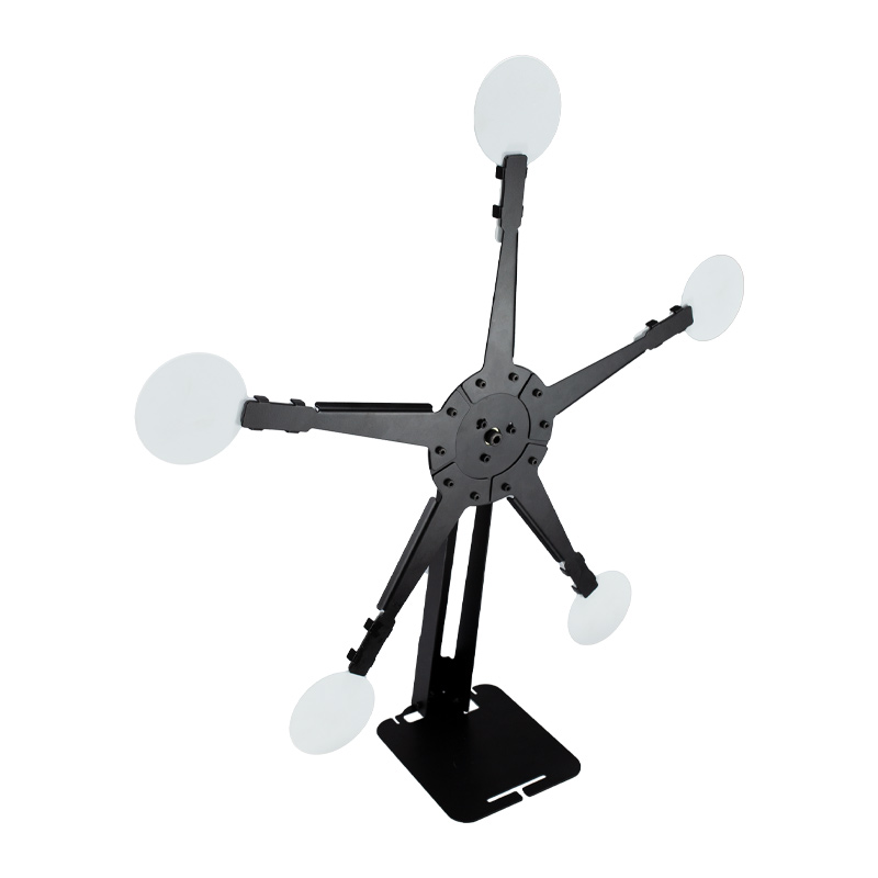 Cada alvo tem 8 cm de diâmetro. São 5 alvos na cor branca para maior destaque. Já a estrutura é na cor preta e toda produzida em aço. Possui 65 cm de altura e 60 cm de comprimento.
