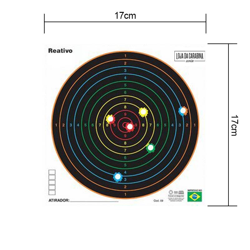 Projetado para reagir com 5 cores diferentes conforme a distância do centro, facilitando ainda mais para identificar o disparo.