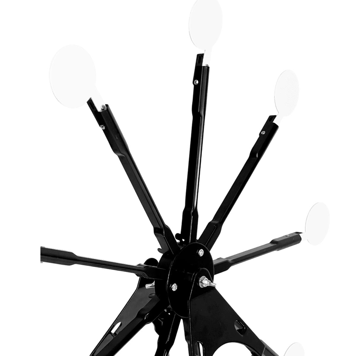 Seu grande diferencial está no sistema rotativo com eixo central, que faz com que os pêndulos girem conforme são atingidos. Esse movimento constante cria um desafio adicional ao atirador, exigindo mais precisão, controle e tempo de resposta a cada disparo.