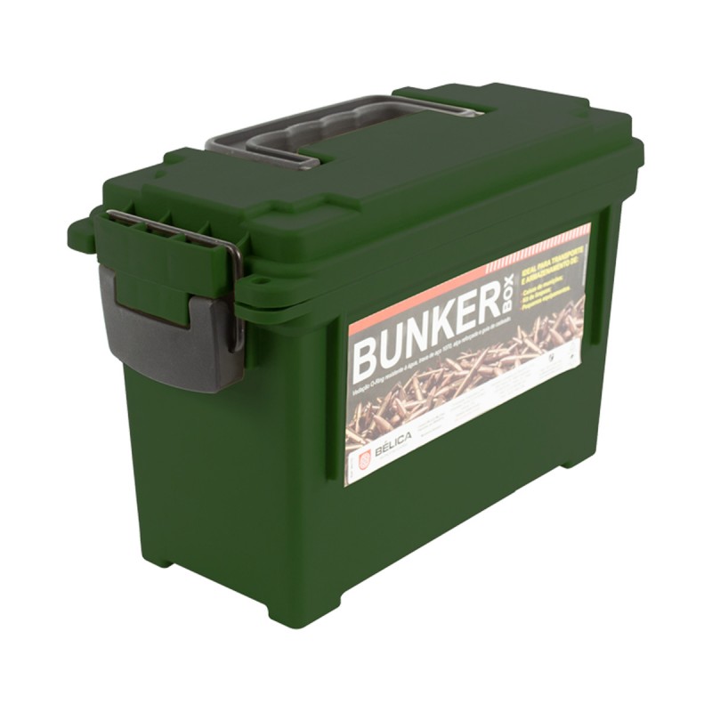 Caixa Bunker Box, fabricada pela Bélica para armazenamento e transporte das suas munições inspirada nas famosas caixas militares.