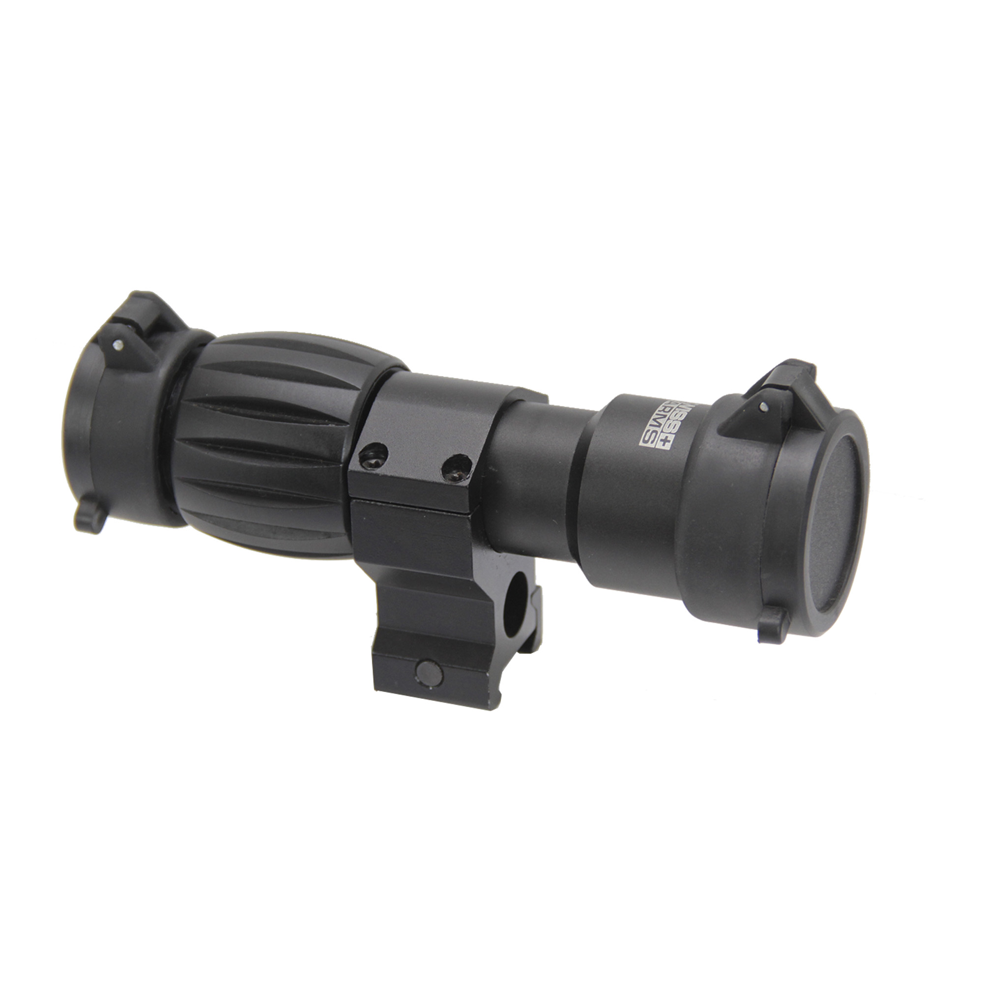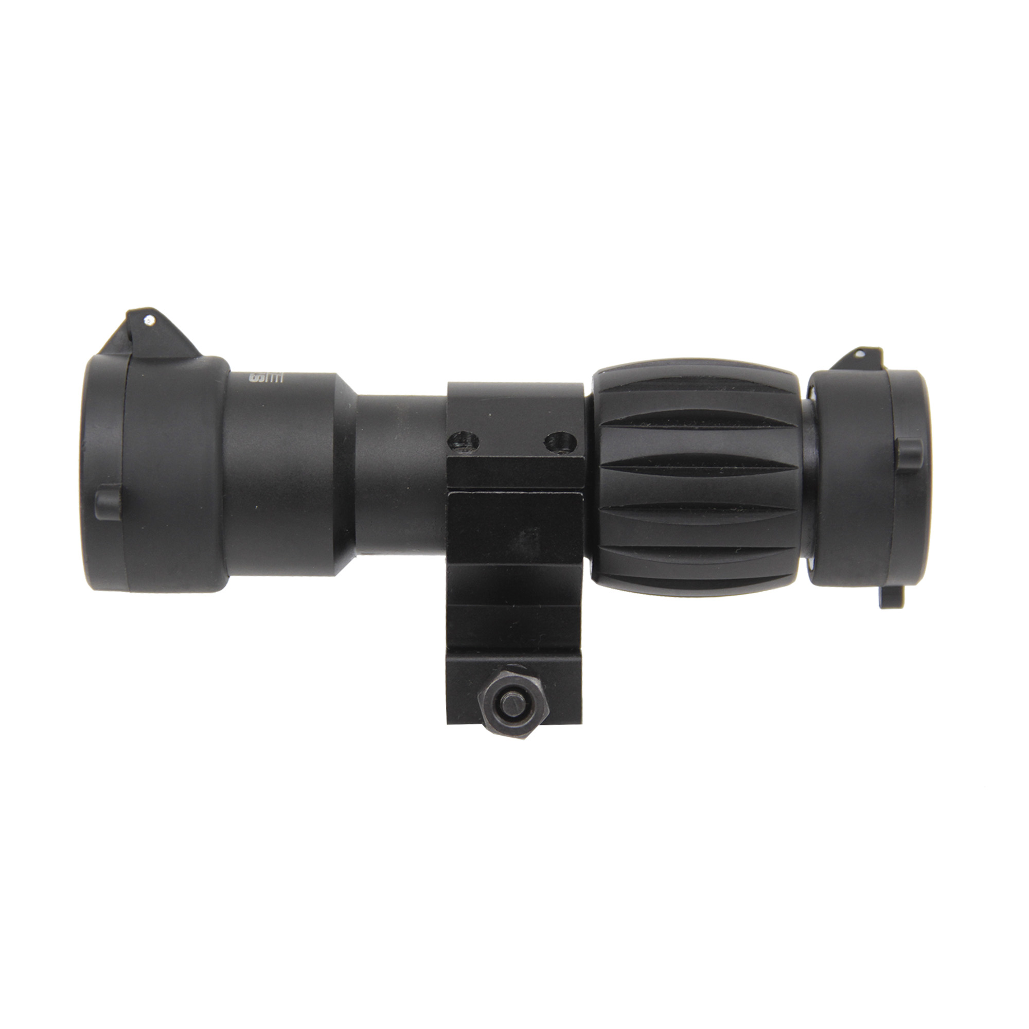 Recomenda se utilizar um mount flip-to-slide que permite mover esse ampliador para o lado quando for utilizar somente o red dot ou miras do equipamento, podendo inverter entre médias e longas distâncias com maior facilidade.