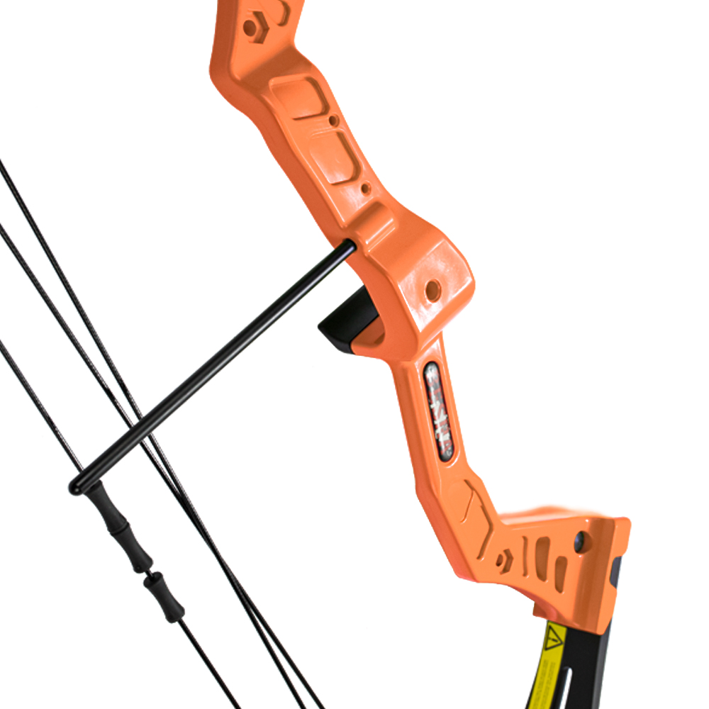 Arco composto Man Kung fabricado na cor preta com empunhadura na cor laranja, modelo MK-CBK1.