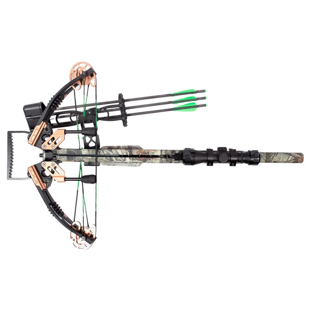 Acompanha Quiver para armazenamento das 03 setas 20” de fibra de carbono que acompanham na caixa. Também acompanha corda auxiliar para armar e jogo de amortecedores de corda.
