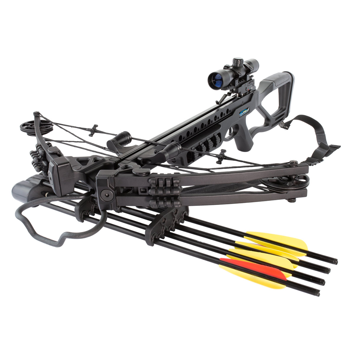 A Balestra Man Kung MK-XB86BK é uma balestra composta que exige força de 185lbs para poder armar.