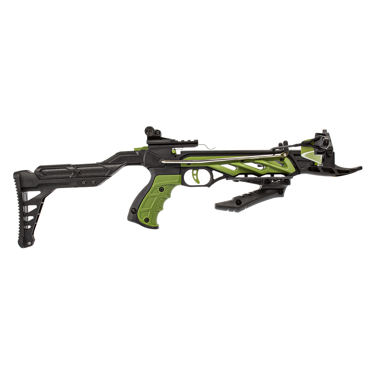 Conhecida também como Mini Pistol Crossbow, essa balestra é muito parecida a uma pistola, e com a força de 80 Libras essa mini crosbow consegue atingir a velocidade de até 56m/s* (156 FPS*) utilizando flechas de 6" fabricadas em plástico com ponteiras em metal.