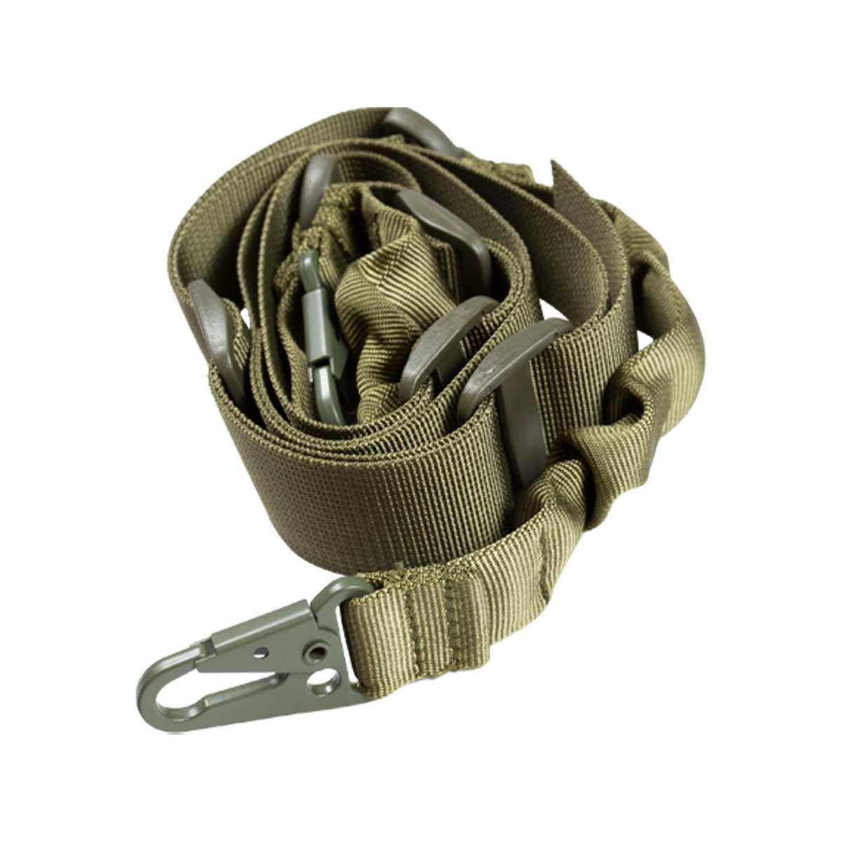 Bandoleira de 2 pontas na cor verde com fita em nylon e ajustável. Fabricada pela Evo é um bandoleira de altíssima qualidade, compatível com diversas armas, como Rifles Airsoft e Carabinas de Pressão.