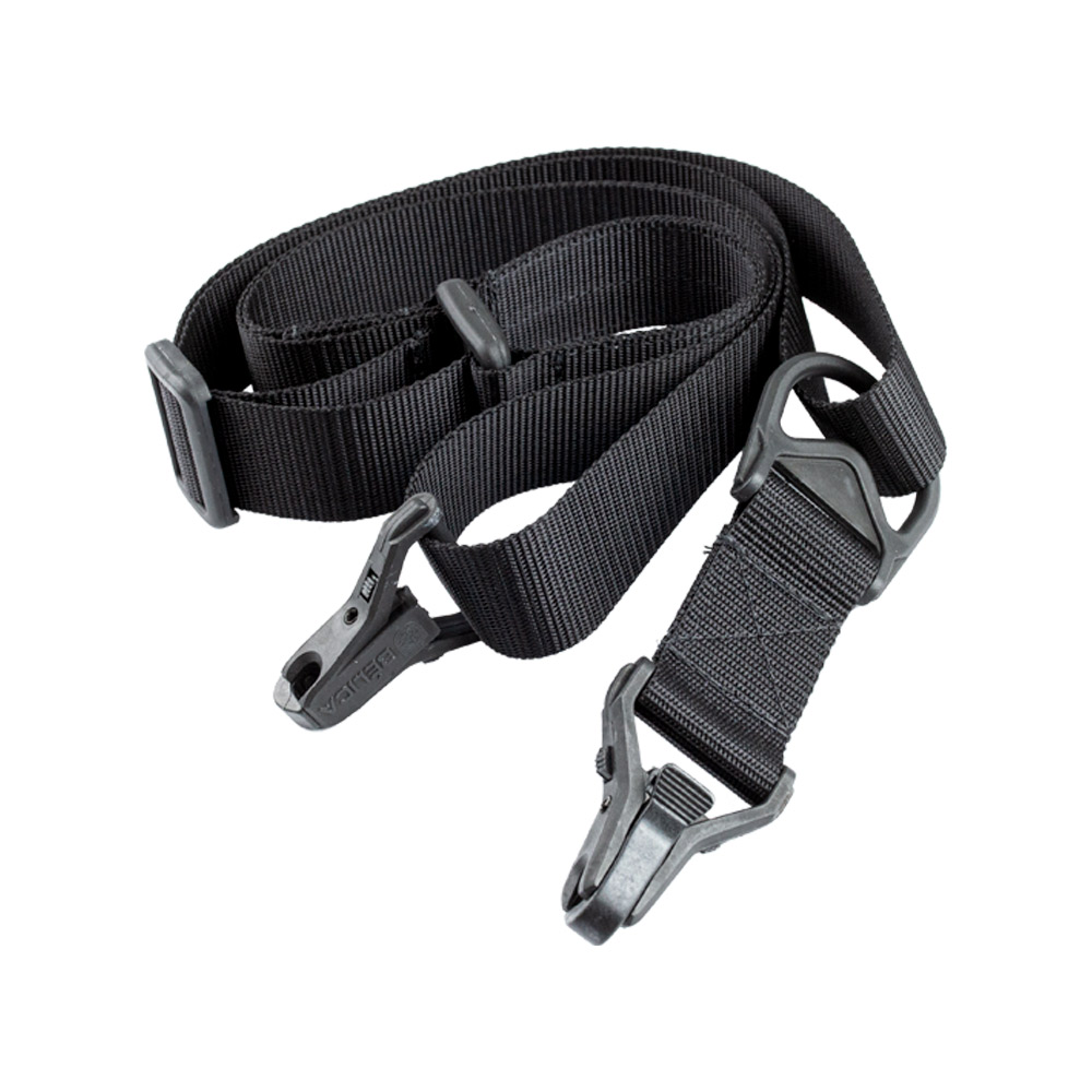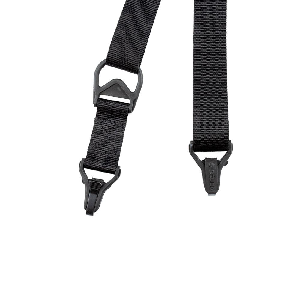 Bandoleira de 2 pontas que pode ser utilizada com 1 ponta somente.