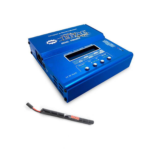 Compatível com baterias Lion, Lipo, LiFe (A123), NiCd e NiMH de 1 a 6 células.