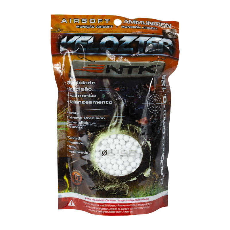 A série de munições Velozter, da NTK foi projetada para perfeição. Usando maquinário especial, passam por um processo que garante extrema precisão com tolerância mínima na faixa de +/- 0.01mm e 5.95mm de diâmetro. Velozter pode ser usada em qualquer cano entre 6.01mm e 6.05mm e inclusive em canos regulares de 6.08mm. A alta qualidade é assegurada durante todas as etapas de produção. Um sistema especial de resfriamento lento é usado quando a munição sai da injetora, eliminando a formação de bolhas no seu interior. Este processo gera um nível único de performance, qualidade e dureza a cada munição nesta embalagem.