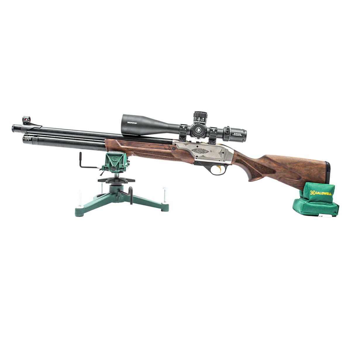 Fabricado pela renomada Caldwell, o modelo Rock DLX é amplamente reconhecido no mercado internacional por sua robustez e confiabilidade. Sua estrutura em ferro fundido oferece uma base extremamente sólida, capaz de absorver vibrações e reduzir significativamente os efeitos do recuo durante o disparo.