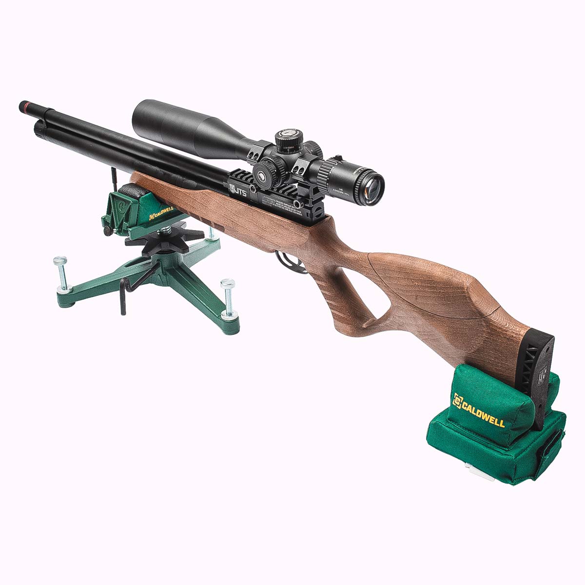 Outro diferencial importante é o batente de coronha, que ajuda a manter o posicionamento da arma sempre no mesmo ponto, garantindo repetibilidade nos disparos. O suporte frontal foi projetado para ser compatível com as bolsas de apoio universal Caldwell Deluxe, ampliando ainda mais a versatilidade do equipamento.