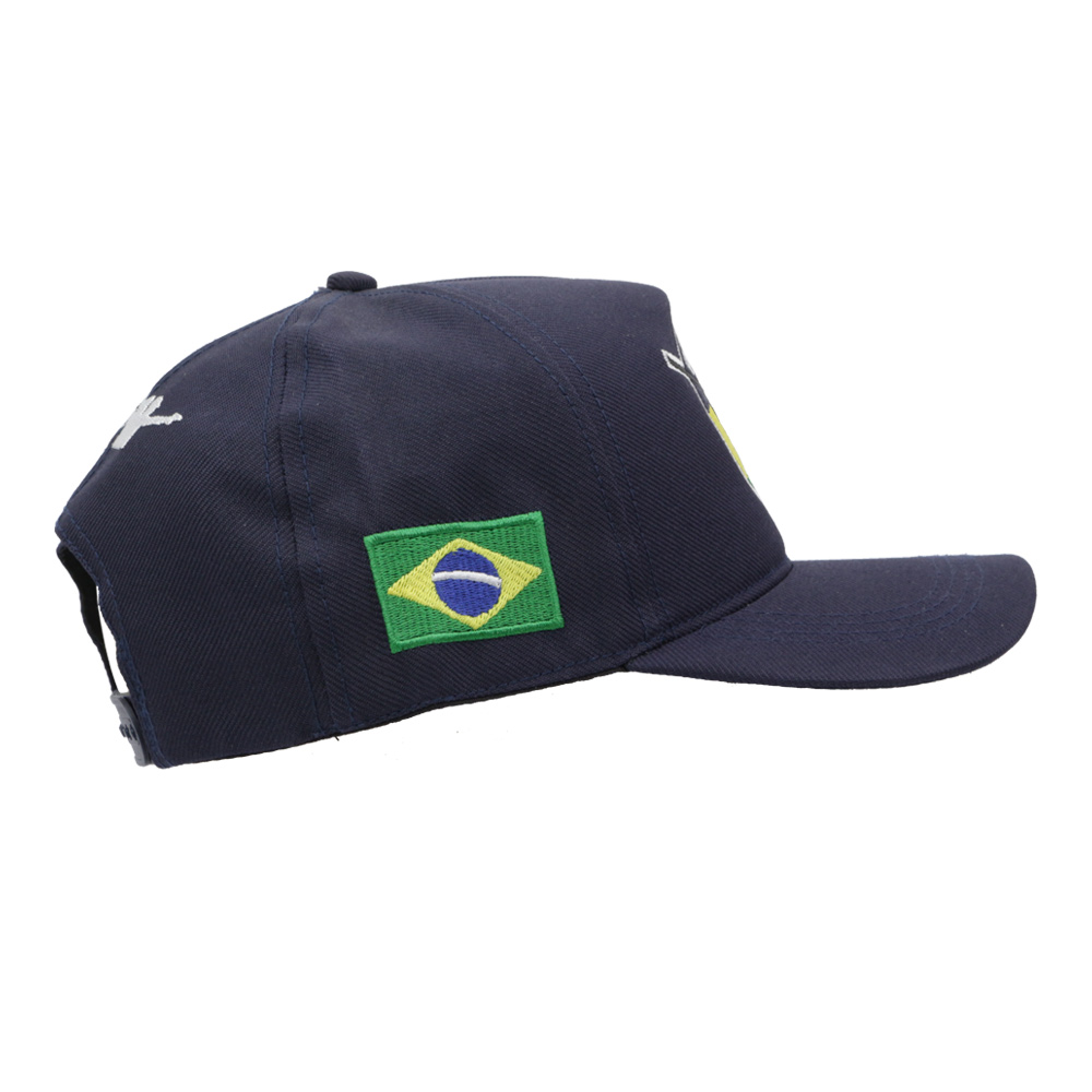 Possui bordado na frente e na lateral bordado a bandeira do Brasil.