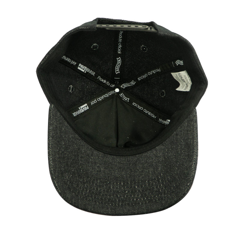 Possui fecho de pressão, estilo Snapback, permitindo ajuste confortável na cabeça.