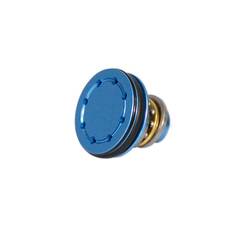Cabeça de pistão em alumínio com anel de vedação. Possui rolamento em sua base, evitando o arrasto lateral. Este tipo de pistão, com furos frontais, é construído para que quando o pistão começar a empurrar o ar este entre em seus pequenos orifícios e então empurre o anel de vedação contra as paredes do cilindro, garantindo uma perfeita vedação.