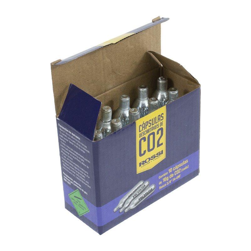 Nessa caixa, é enviado 10 unidades de cilindro da Rossi 16g.